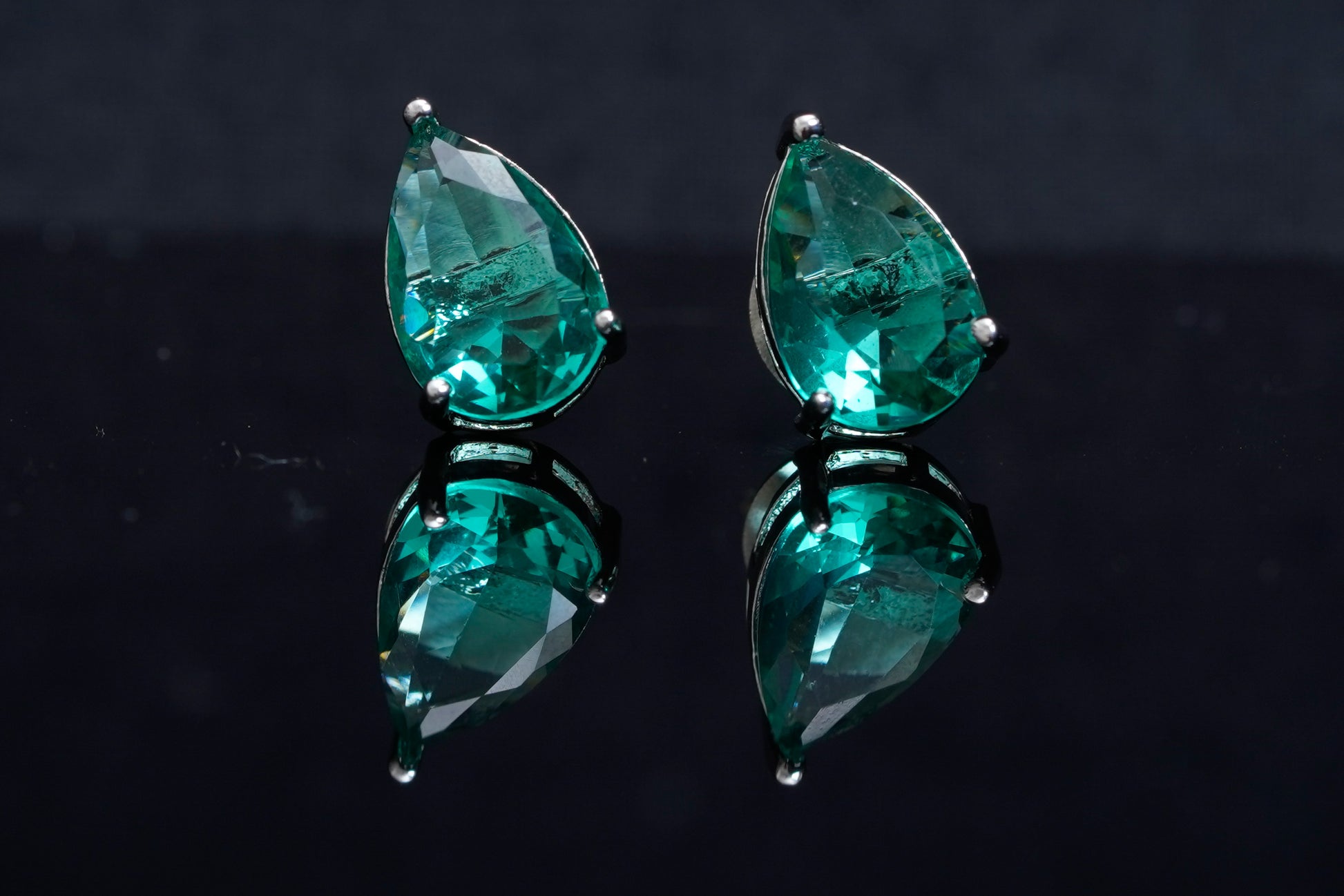 Anabelle ear studs in deep, clear, sea green in tear drop are a mesmerising ear studs. The clarity of the deep sea green ear studs are unique and alluring. The colour of these ear studs along with the shape of these unique ear studs are unique. Comfortable to wear, with the sparkling finish you will find these ear studs a pair to quickly become a staple in your collection. They are versatile enough that you can wear them with any outfit, any time of the day or night, and be sure to turn heads.