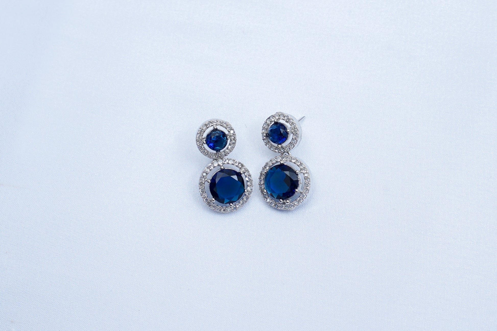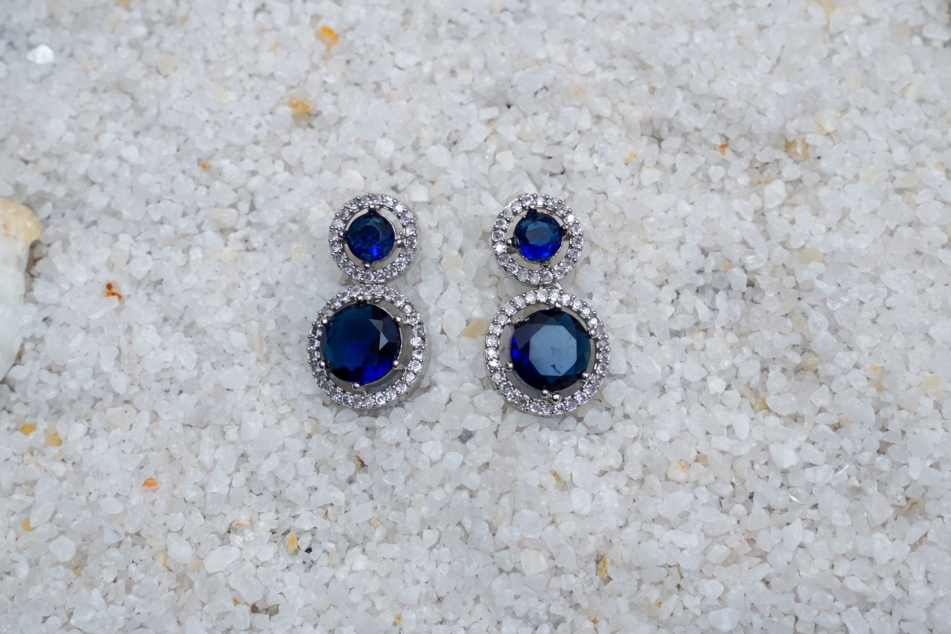 You will fall in love with our Aurelia grace earrings crafted out of round, blue sapphire stones ensconced with perfectly cut, small american diamonds. The shine in these earrings will take your breath away and you'll soon find these will become one of your favouritest pieces of jewellery. Be ready to sparkle in a sophisticated, alluring piece of jewellery that is our Aurelia grace earrings.