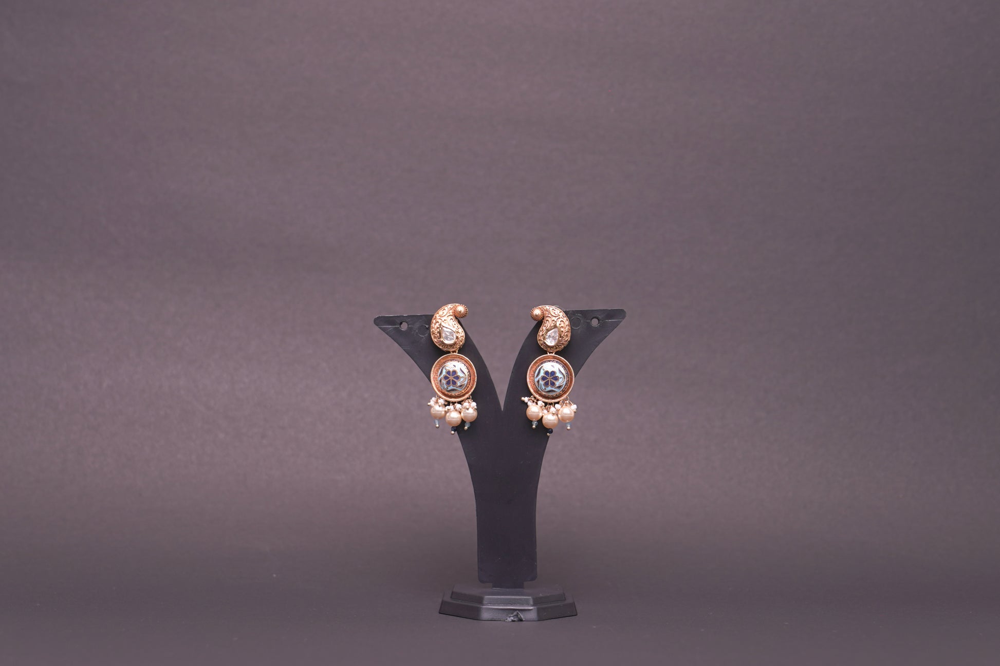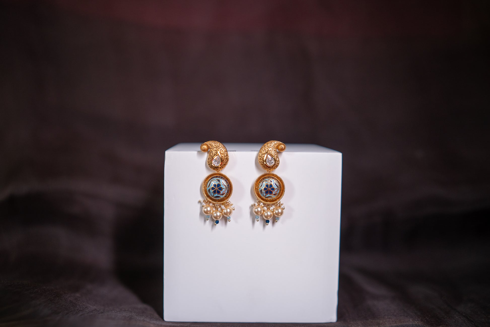 Beautiful gold finish stone polki and enamel work earrings in blue