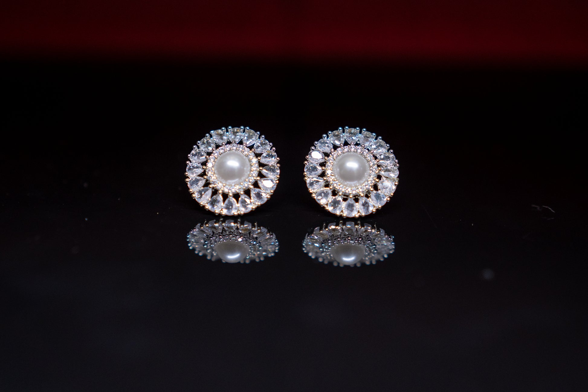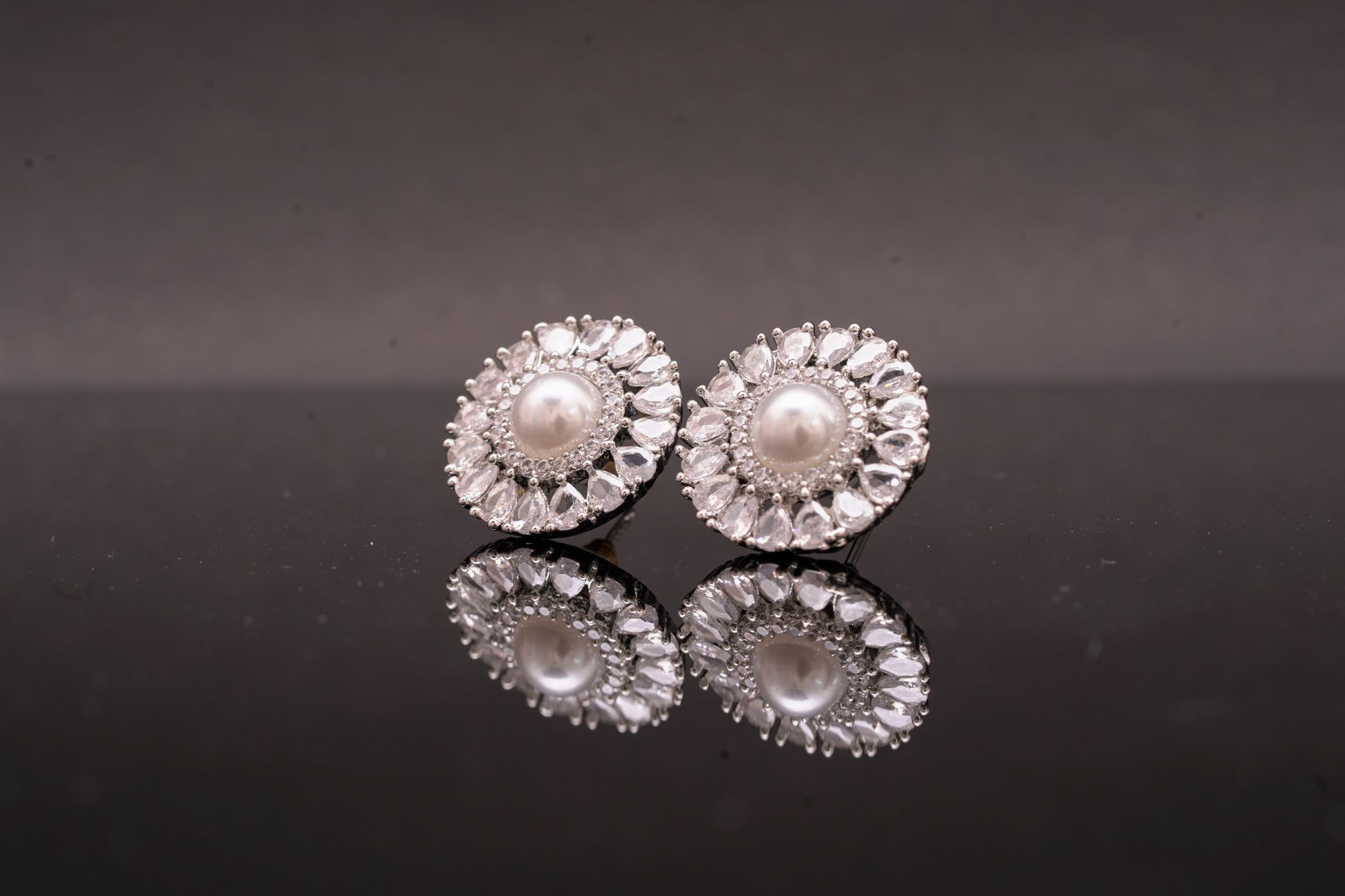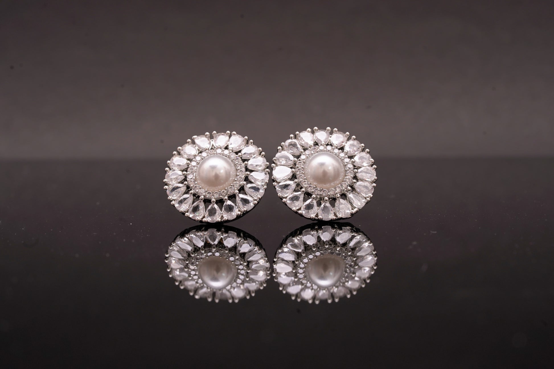Effortlessly beautiful round ear studs with pearl and real American diamonds