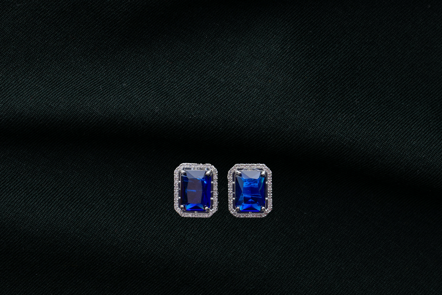 Offering sophistication to your look with our Belle blue , cushion cut, sapphire ear studs with american diamonds. These are versatile ear studs which are perfect any outfit, elevating your look. Do your hair in a nice do and team these ear studs with your outfit and matching heels for a chic look.