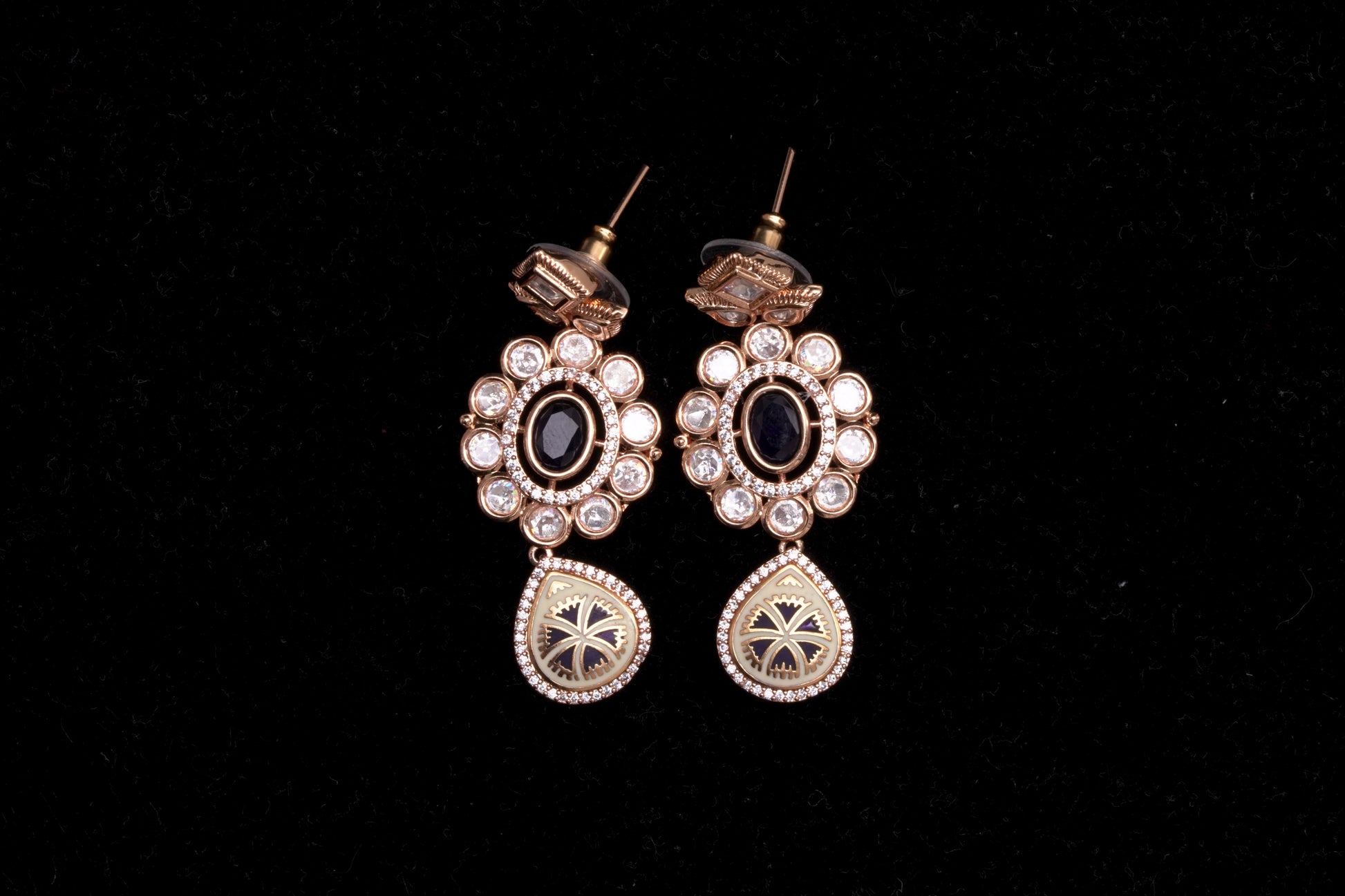 Danglers with stone polkis and enamel work in black
