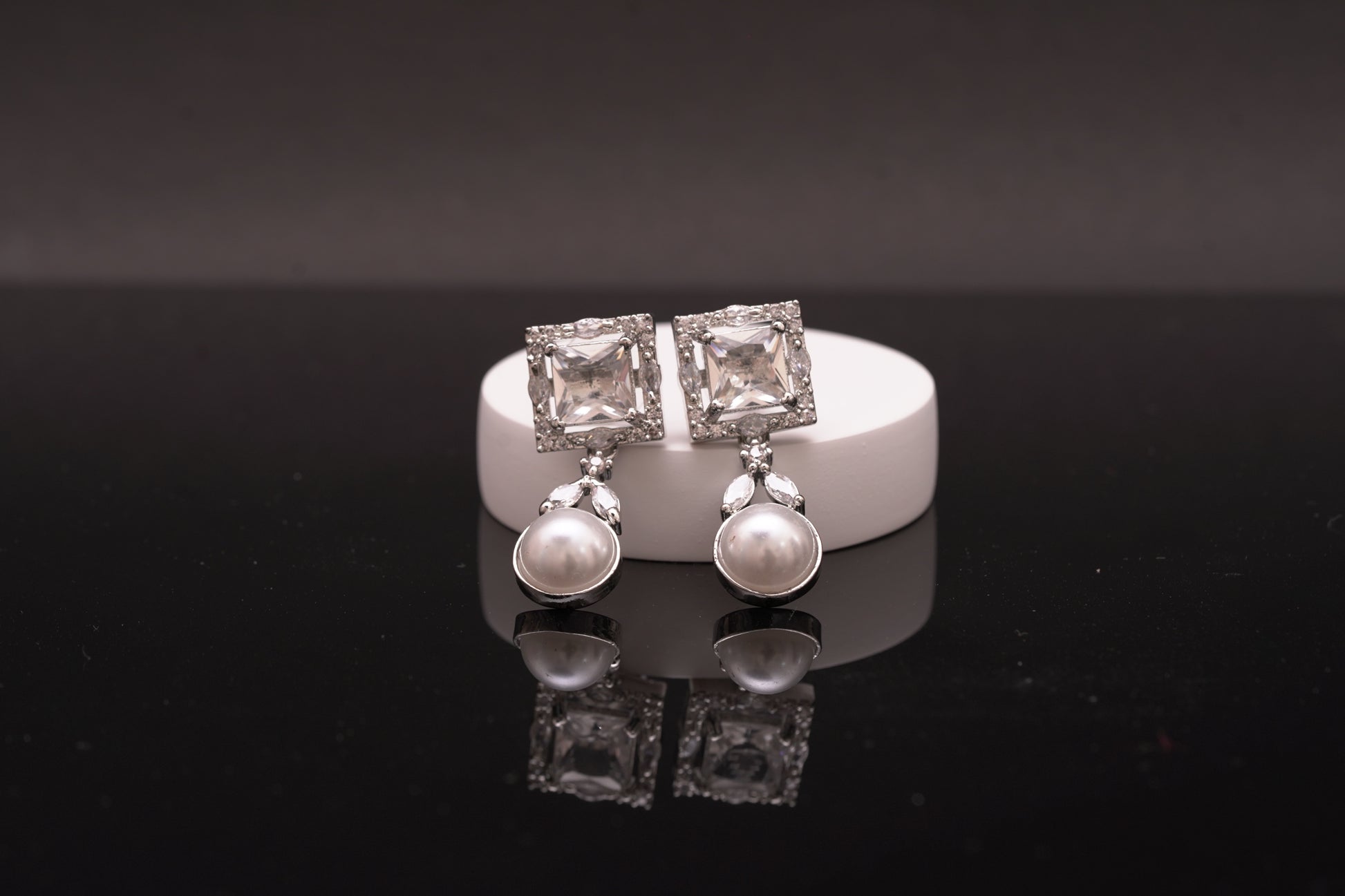 These stunning earrings are crafted with a large square real American diamonds which gently drops as a delicate pearl drop, adding an elegant and irresistible touch to your appearance. They are versatile and can be dressed up or down as you'd like. These are a must have for an easy stylish look.