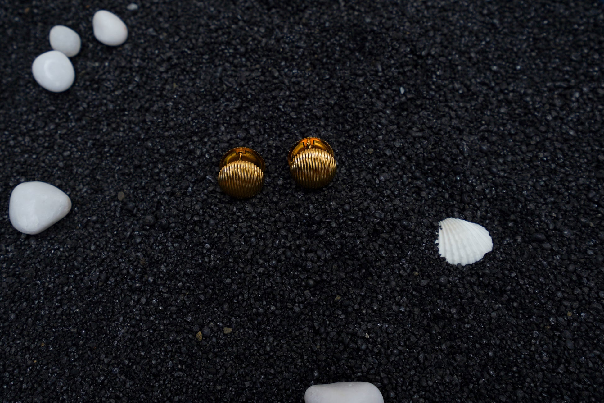 Our anti-tarnish gold finish Luvia oval shaped button ear studs in a ribbed pattern are stylish and very chic. These are the perfect ear studs for any occasion. We promise that once you wear them and the way these will complement and add to your your personal style will make these a go-to every time. You will love how lightweight and very comfortable these Lucia ear studs are.