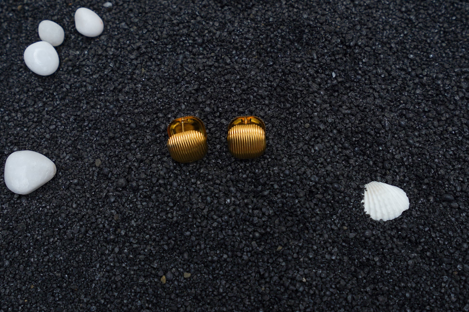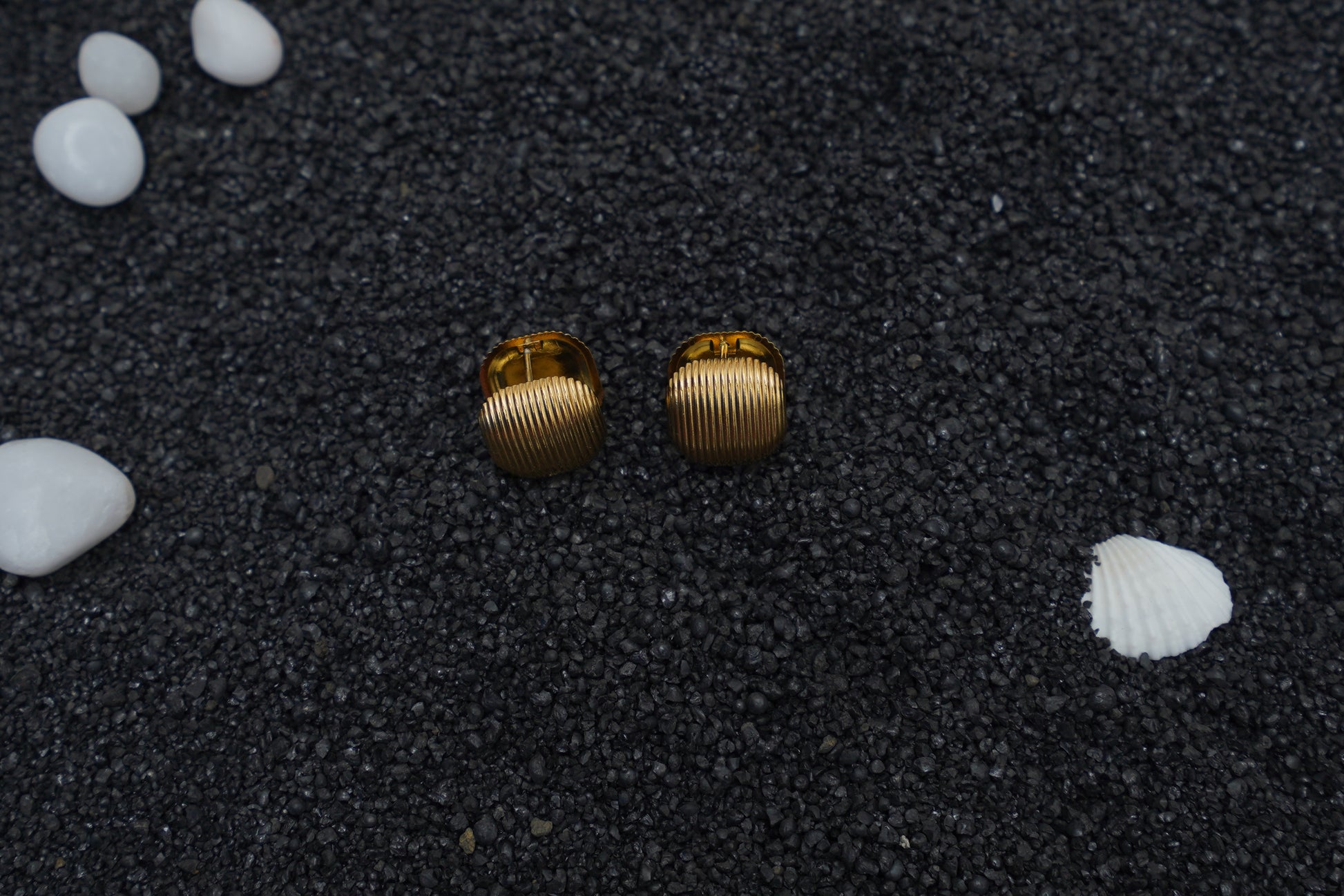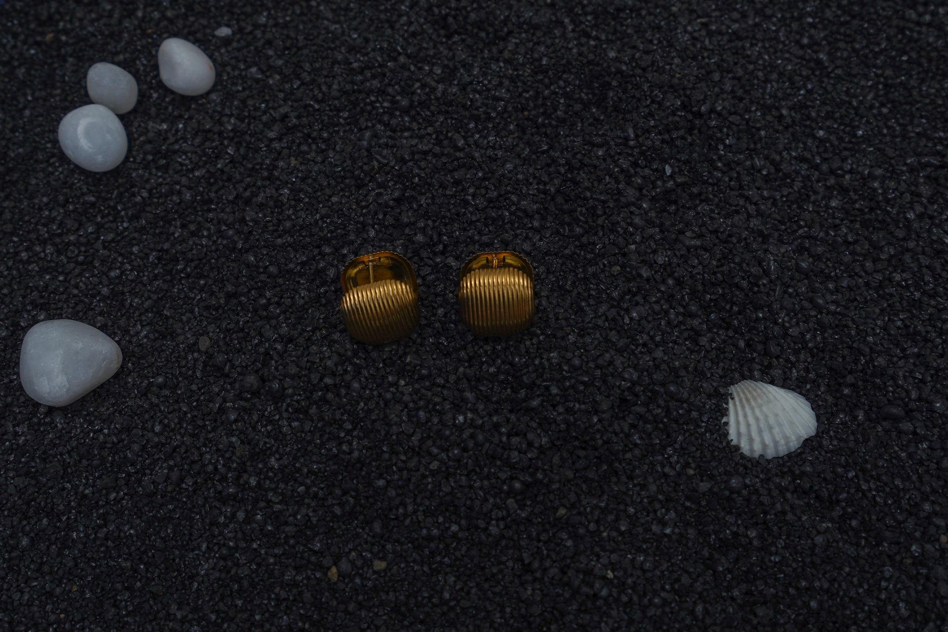 Our anti-tarnish gold finish Orna square shaped button ear studs in a ribbed pattern are stylish and very chic. These are the perfect ear studs for any occasion. These will complement and add to your your personal style will make these a go-to choice every time. You will love how lightweight and very comfortable our Orna ear studs are.