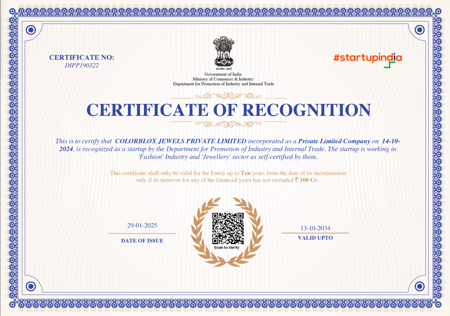 Proudly recognized as a Startup by the Department for Promotion of Industry and Internal Trade (DPIIT) under the Startup India program. Your trust fuels our journey as we bring you finely crafted jewellery with authenticity and excellence. ✨